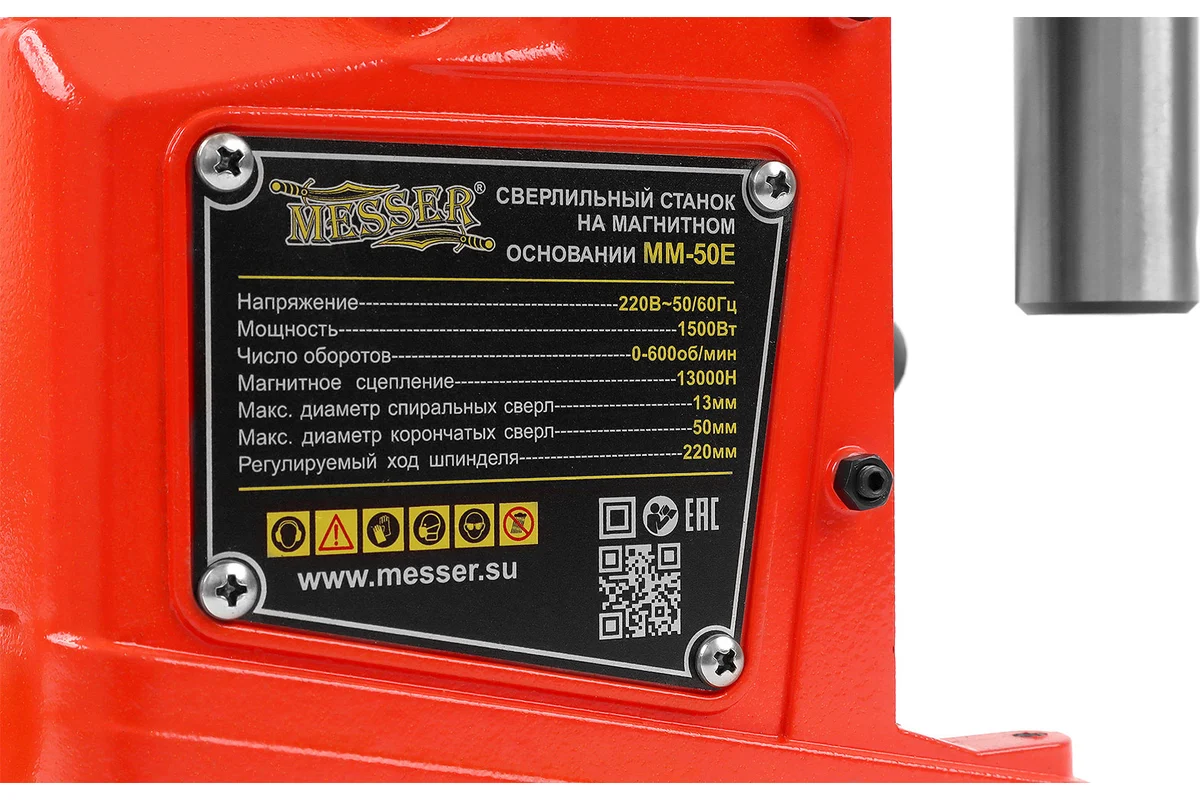 Сверлильный станок на магнитном основании MESSER MM-50E предназначен для сверления больших отверстий в толстом листовом металле и в различных металлоконструкциях на горизонтальных, вертикальных и иных направлениях. Сверлильный станок используется в тех случаях, когда невозможно использовать ручные электродрели или традиционные сверлильные станки.